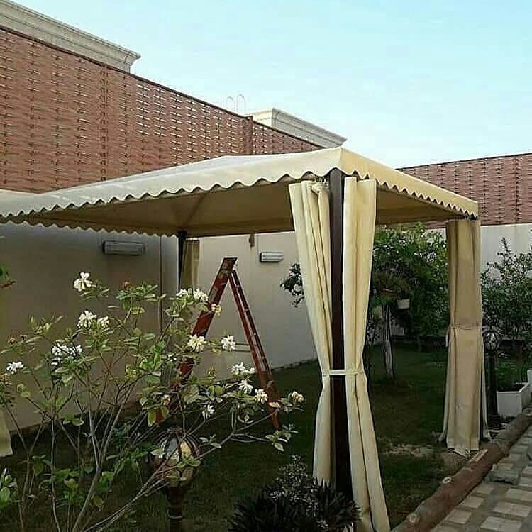 يقوم بتفصيل وتصنيع مظلات السيارات أو الحدائق والشاليهات والبيوت والمنازل أو الكراجات بأنسب وأقل تكلفة للعملاء في مدينة الرياض بالمملكة السعودية.
